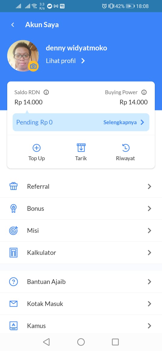 1. Pastikan kamu sudah registrasi akun saham, dimana kamu sudah memiliki rekening RDN nya, tanpa ini kamu gak bisa top up saldo guys. untuk memastikan jika kamu sudah teregistasi maka pastikan di pojok kiri atas ada teks " Top Up RDN". jika sudah klik saja